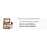 Квадратные тени для глаз # Белый чайный шампанский + Монохромные румяна #806 + Светящийся блеск для губ #806