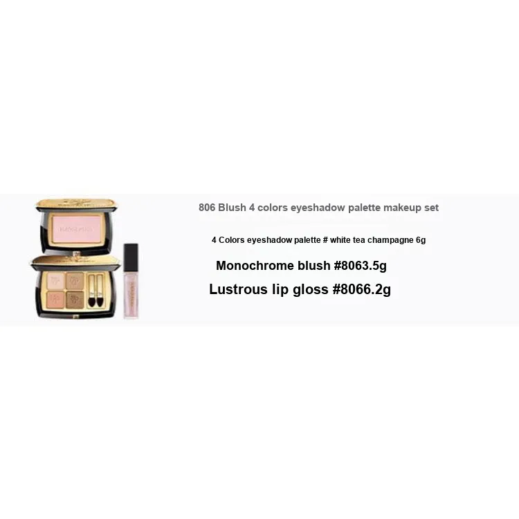 Комплект:Квадратные тени для глаз # Белый чайный шампанский + Монохромные румяна #806 + Светящийся блеск для губ #806