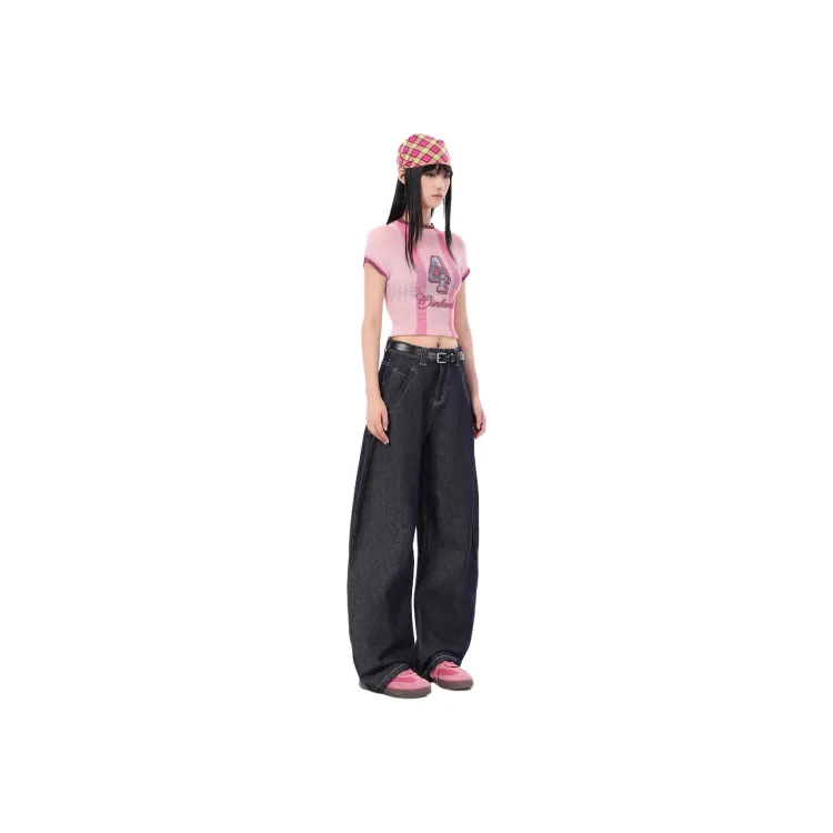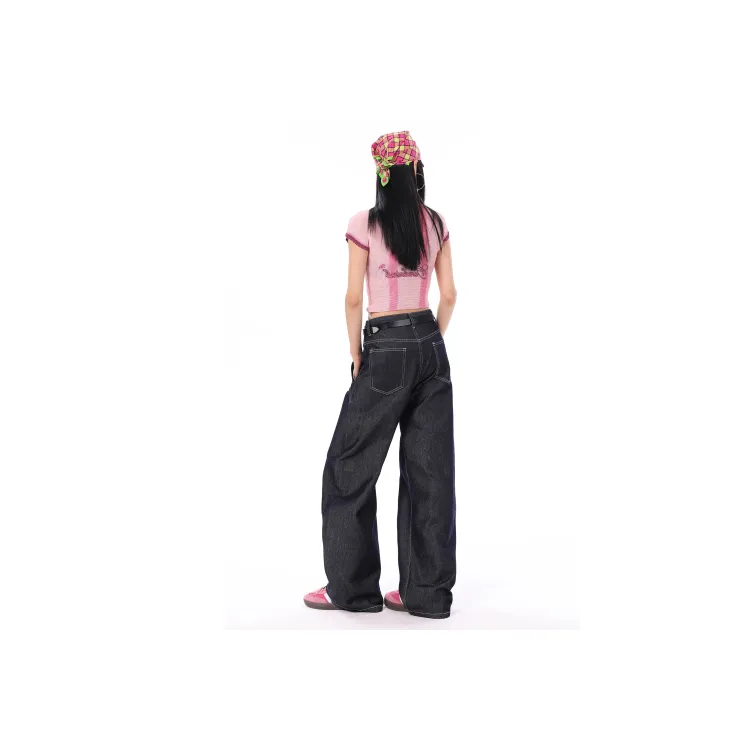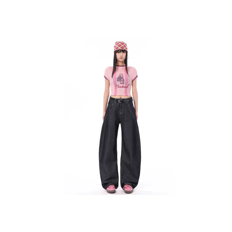 Чёрный топ + синие джинсы