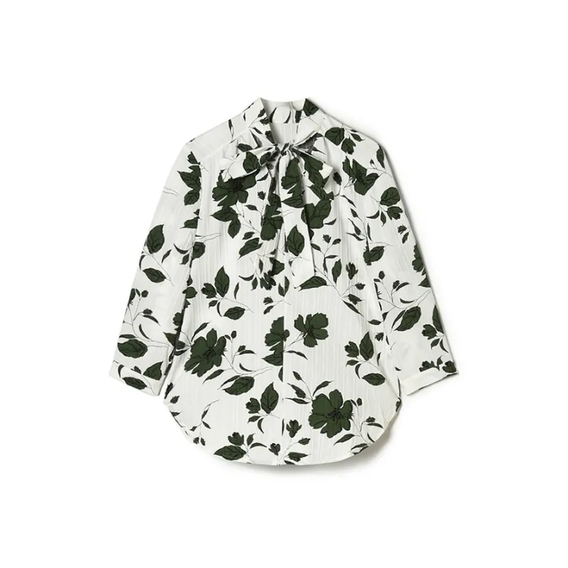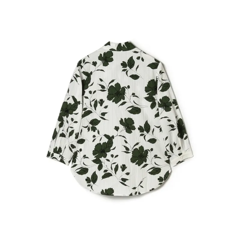 Mapping Белый подкладочная ткань Зеленый цветочный Женский рубашка