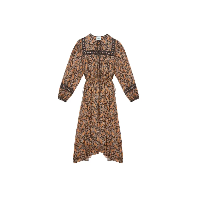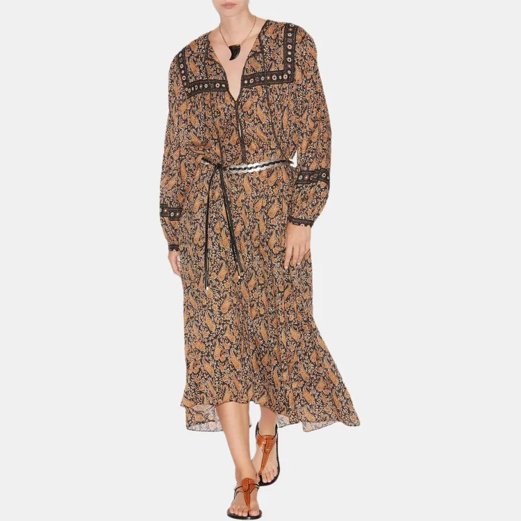 ISABEL MARANT ETOILE SS25 Длинное Платье с Длинными Рукавами Женское Верблюжий Коричневый