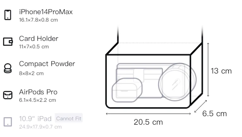 Д20,5*Ш6,5*В13см