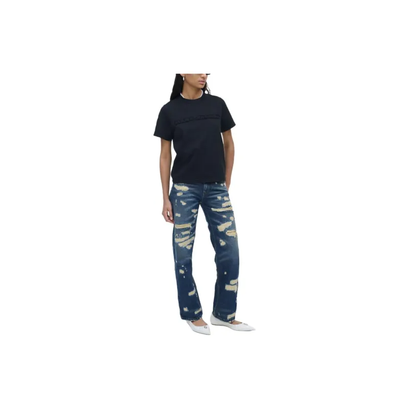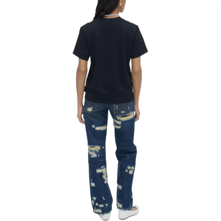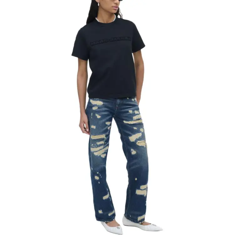 MARC JACOBS Логотип Аппликация Круглый вырез Пуловер Короткий рукав Т-рубашка Женская Черная