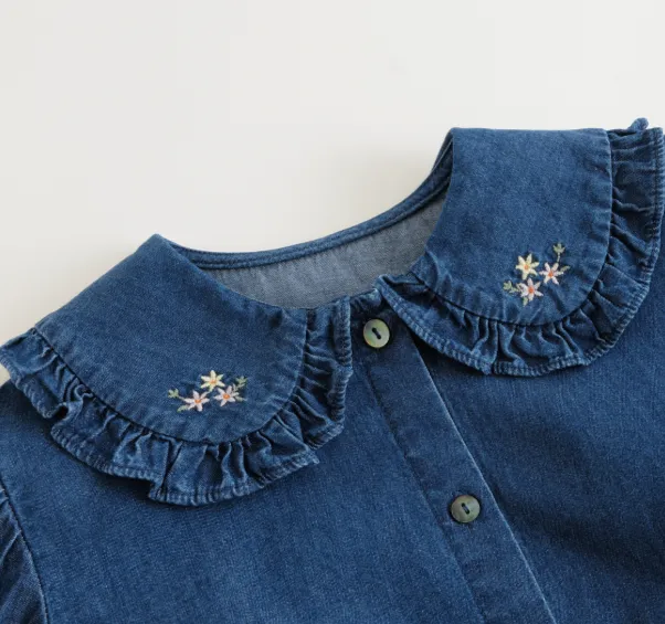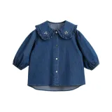 MARC JANIE Растение и Цветочный Принт Детская Джинсовая Рубашка Весенний Осенний Малыш Темный Аква Синий