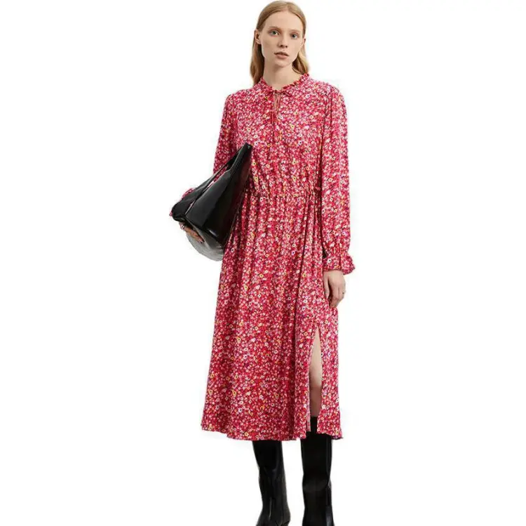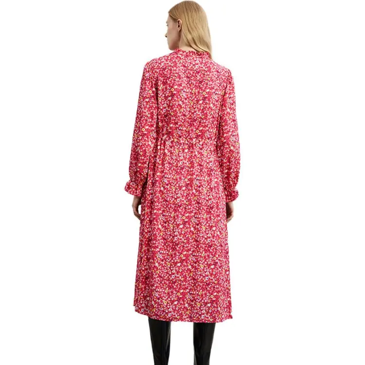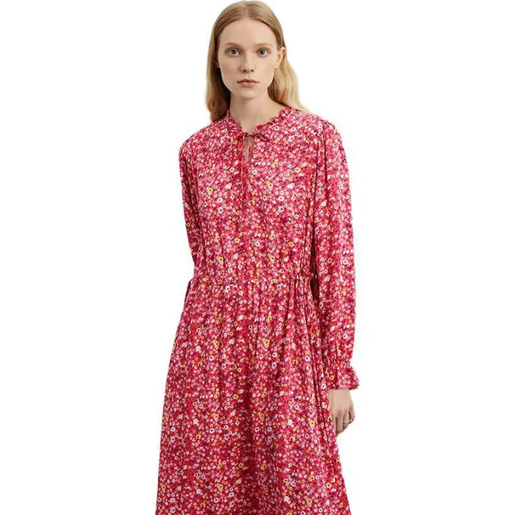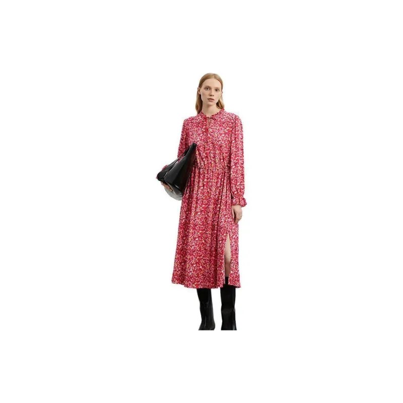 MARC OPOLO Длинное платье с длинными рукавами женское красное с принтом