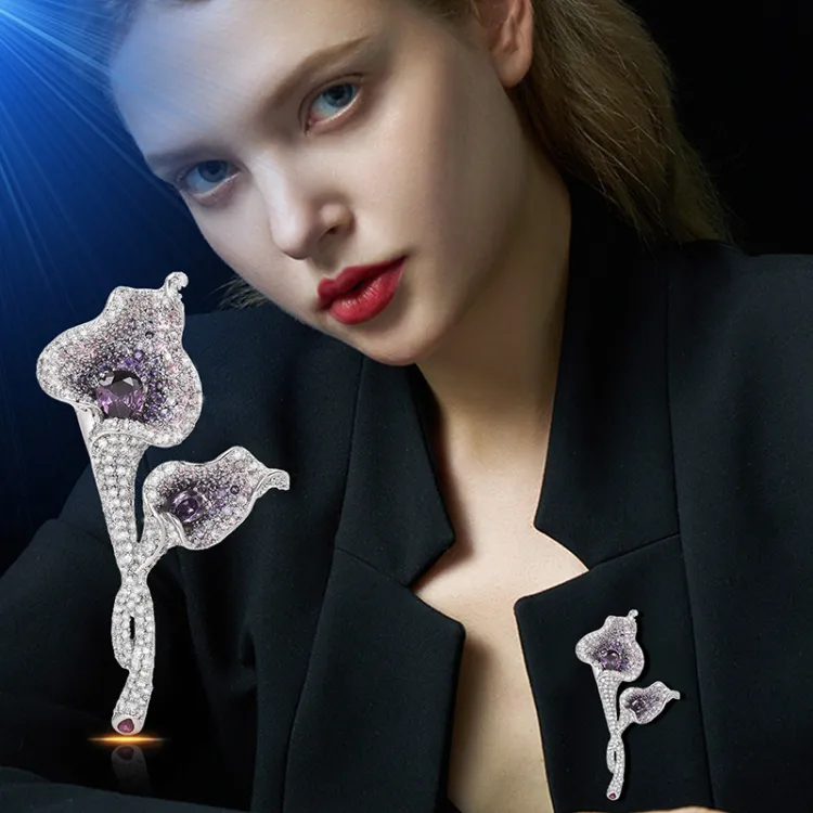 Брошь "Весна Цветение Калла" - Фиолетовая