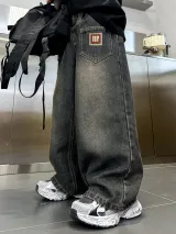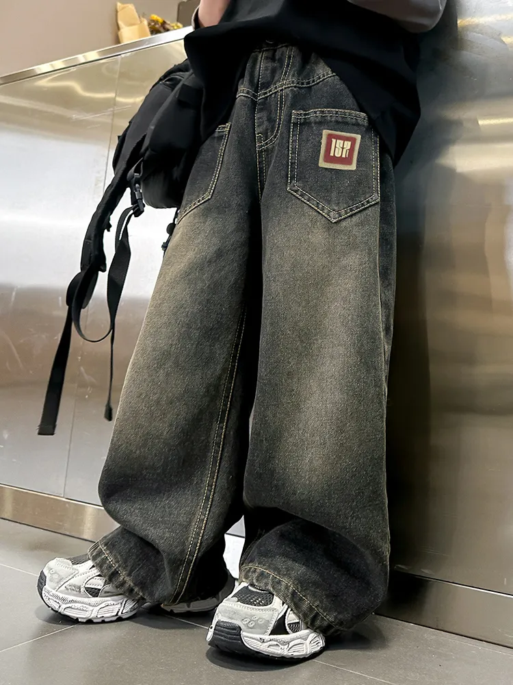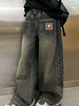 Marcolor Винтажные черные штаны с флисовой подкладкой школьные джинсы