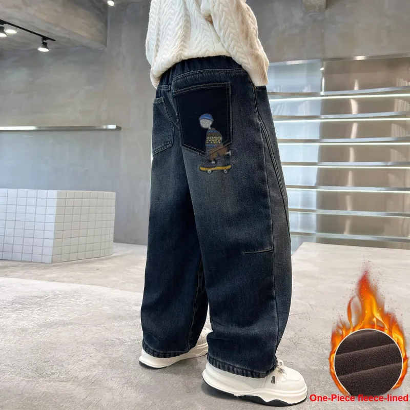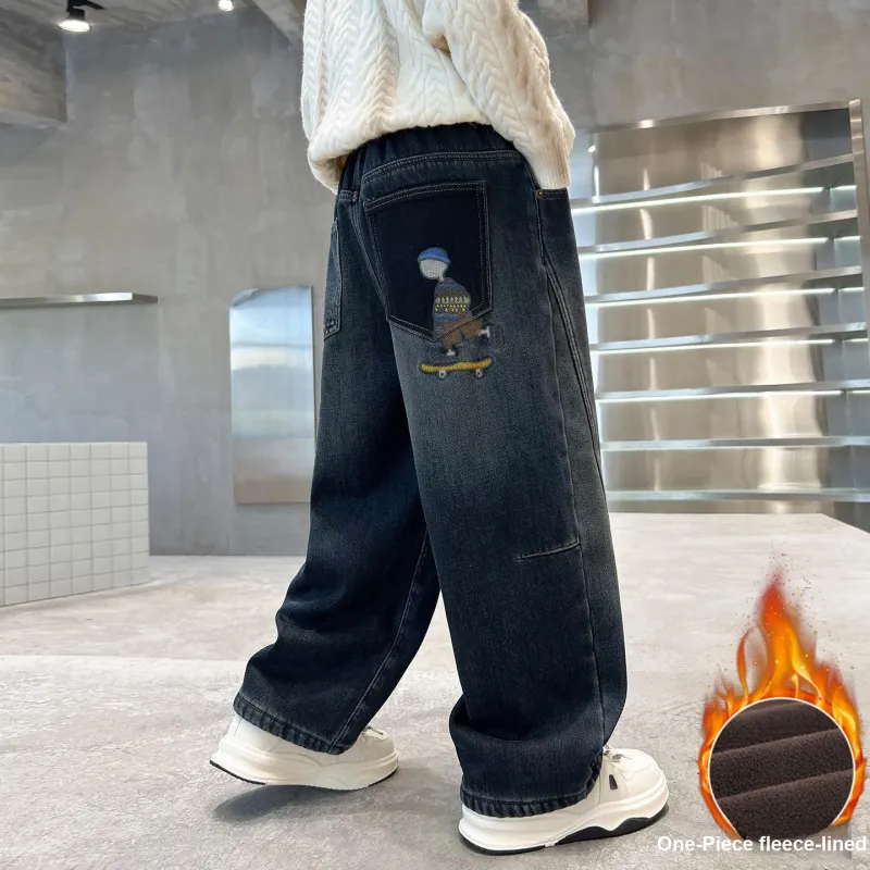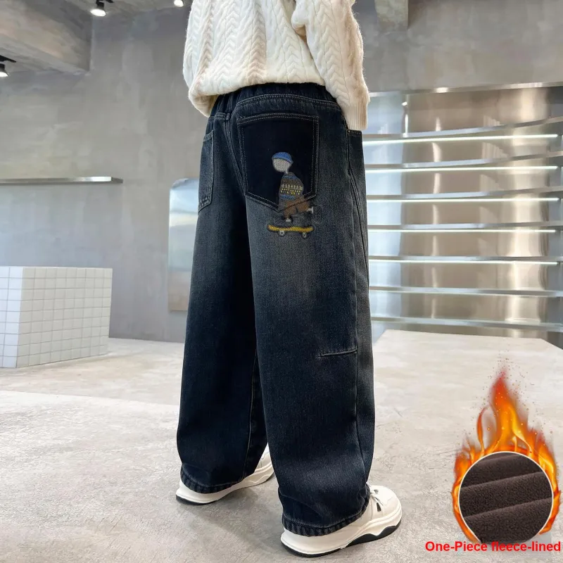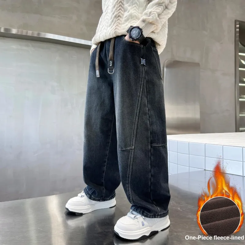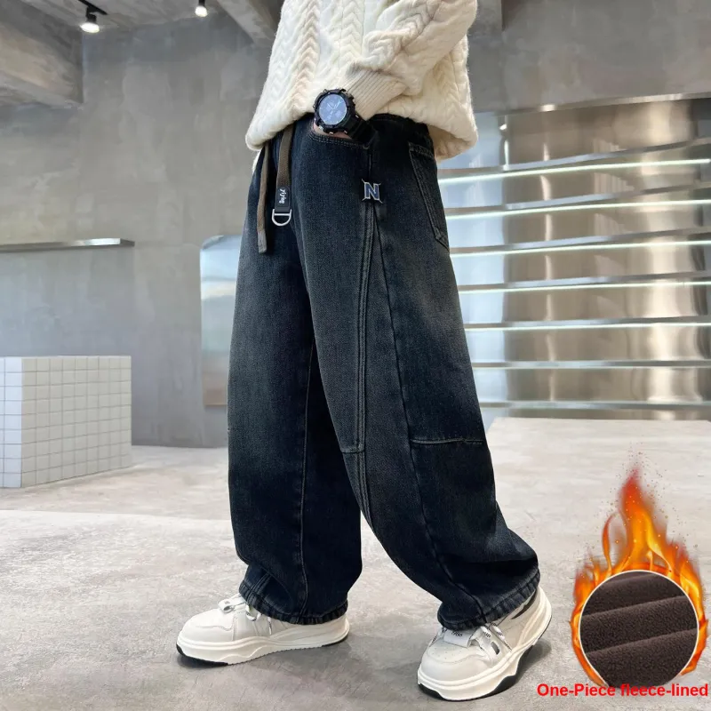 Marcolor Синие Серые Штаны с Флисовой Подкладкой Школьные Джинсы