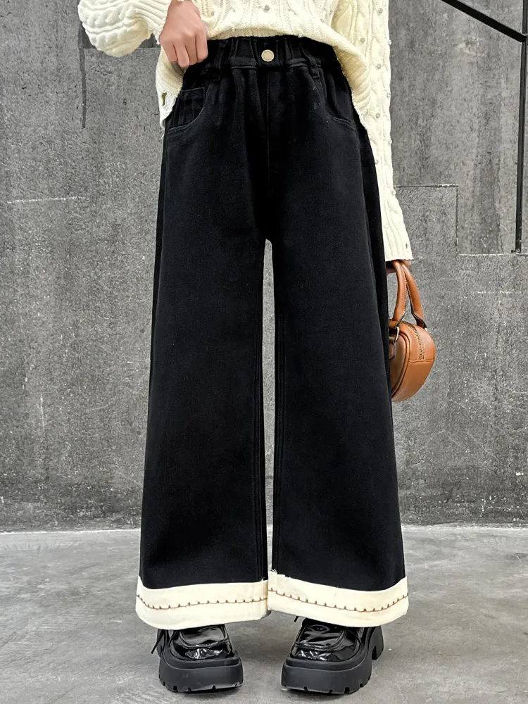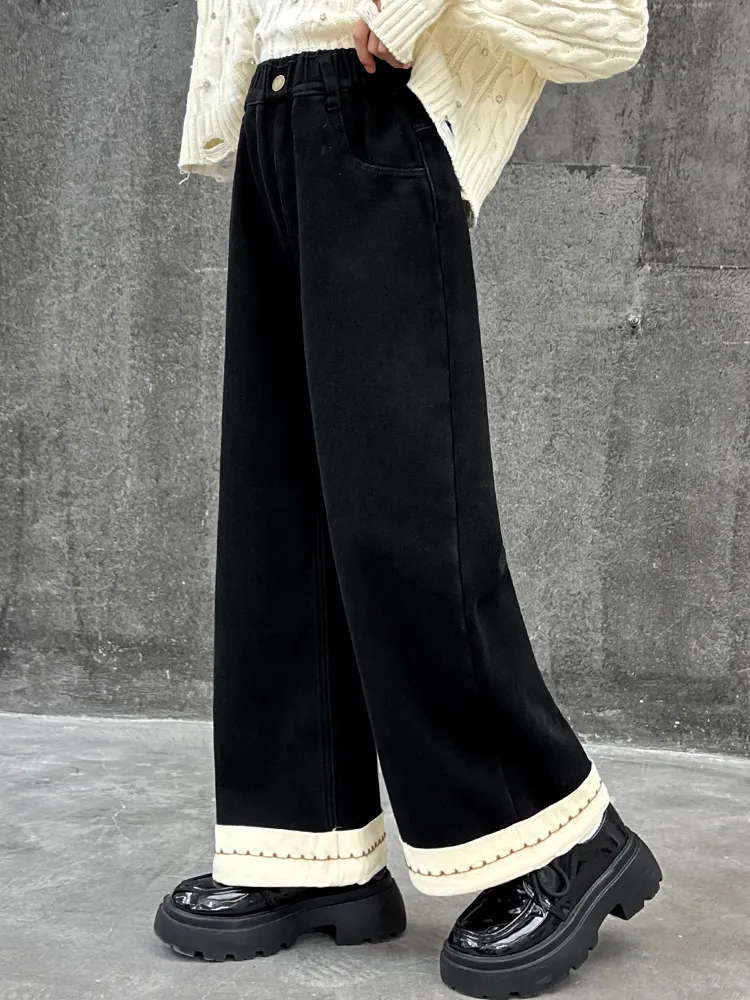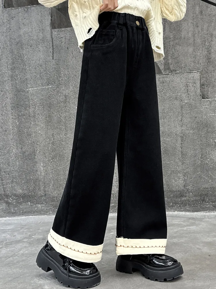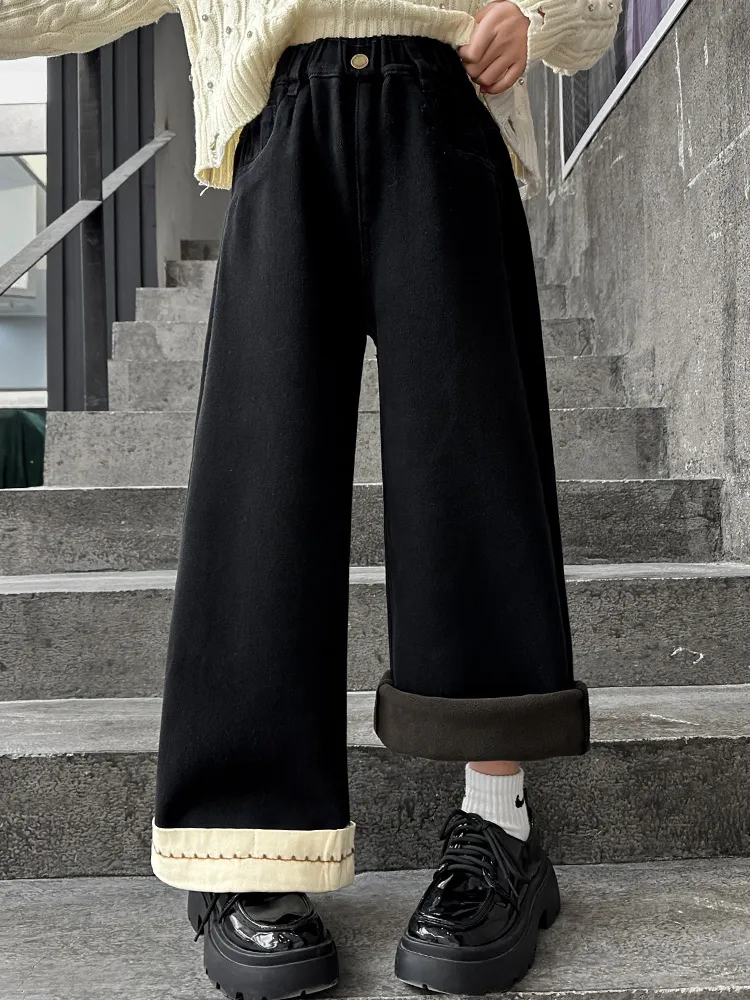 Marcolor Черные флисовые штаны с подкладкой школьные джинсы