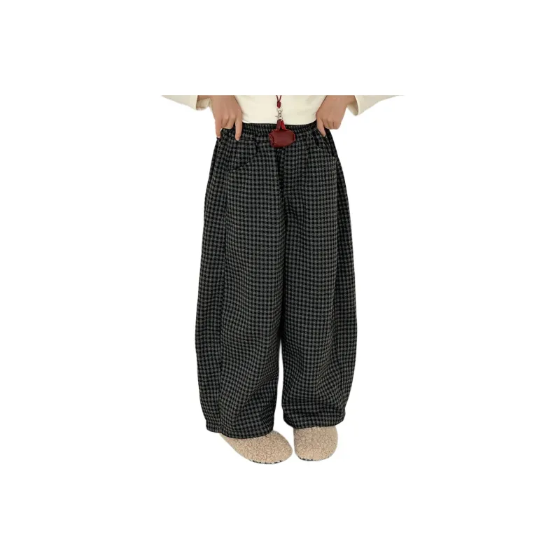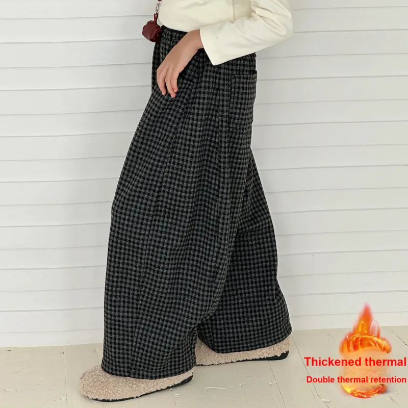 Marcolor Флисовые штаны в клетку для школьников вязаные тренировочные штаны