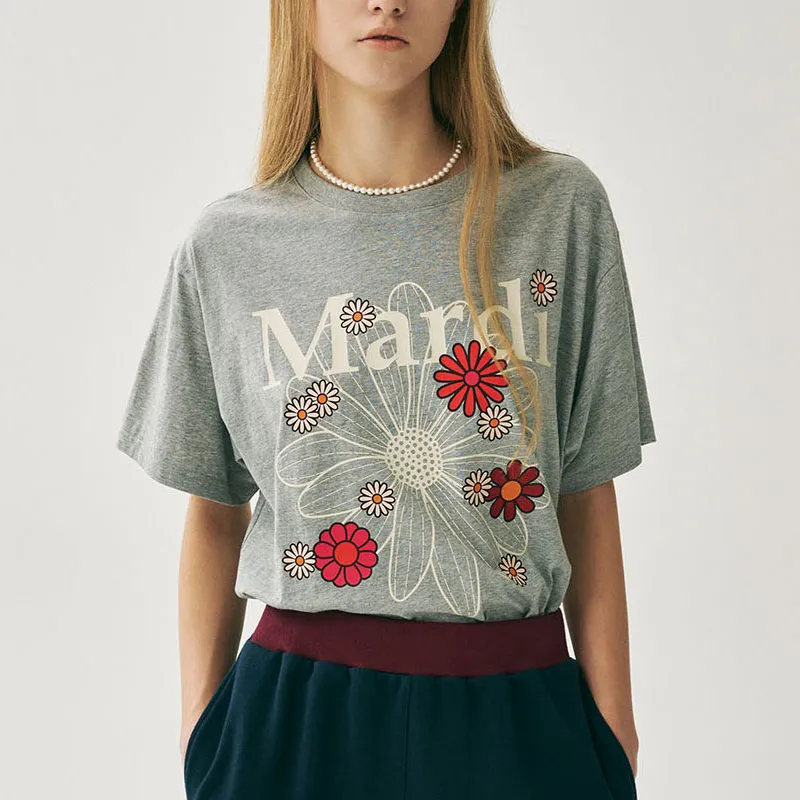 MARDI MERCREDI Blossom SS25 T-Shirt Женская Серый Корейский стиль