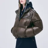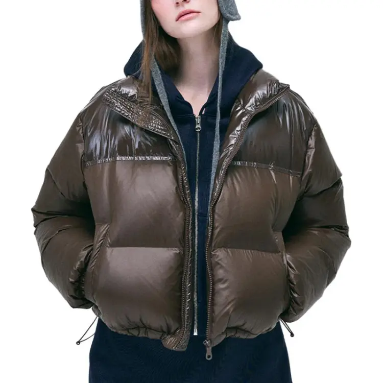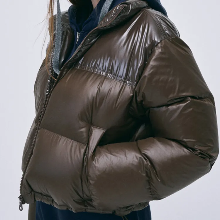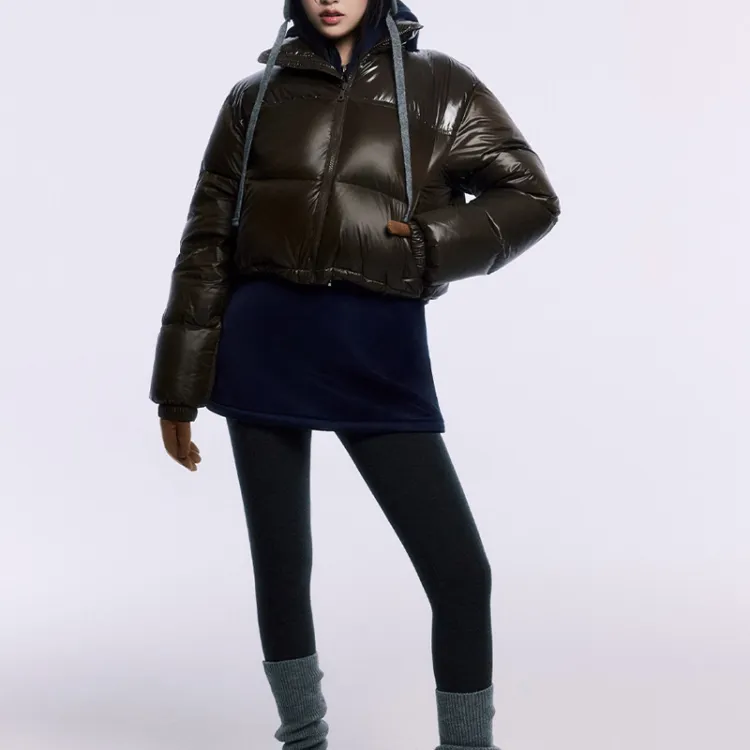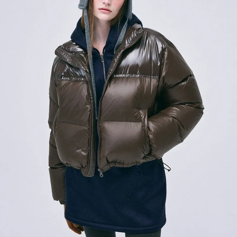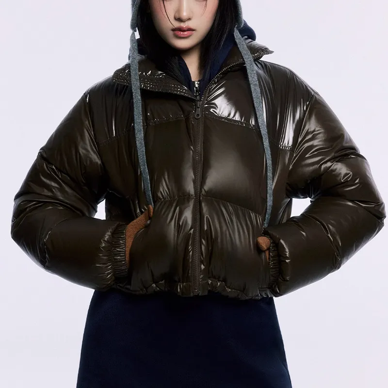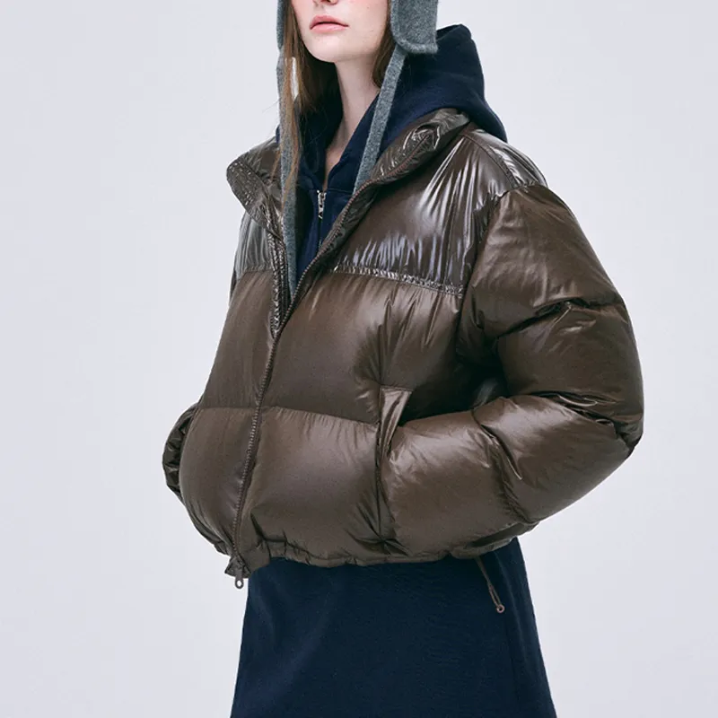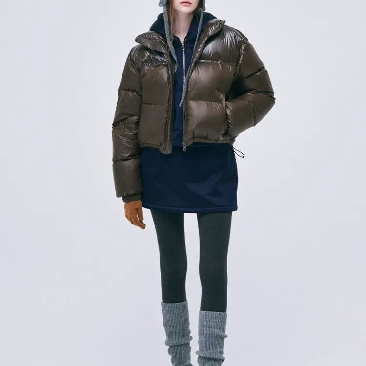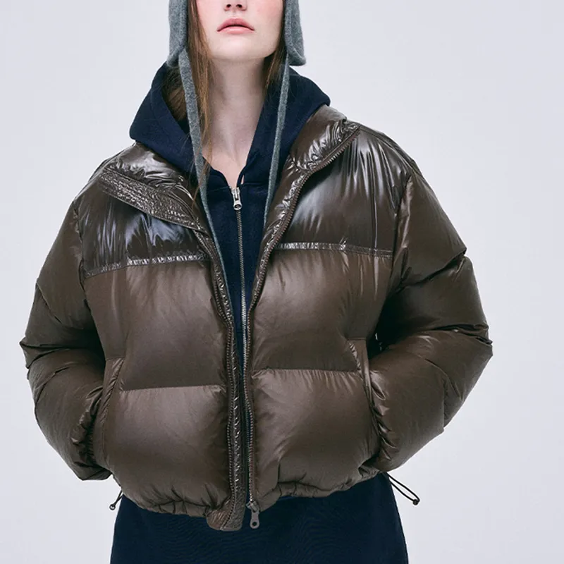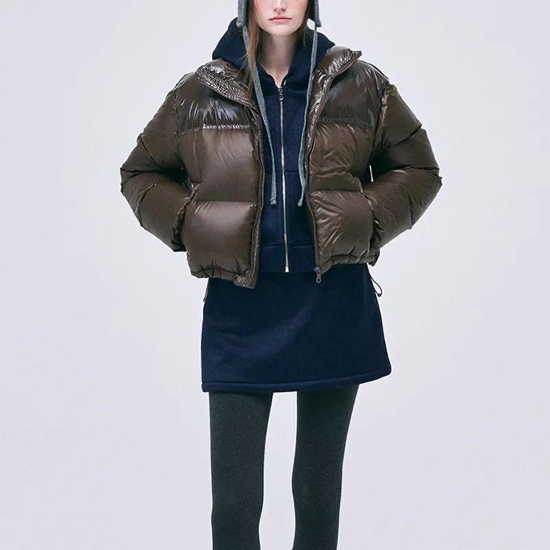 MARDI MERCREDI FW24 Укороченный пуховик с цветовым блоком коричневый пуховик корейский стиль женский коричневый