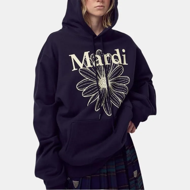 MARDI MERCREDI Fw25 OVERSIZED HOODY FLOWERMARDI_Темно-синий Сливочный Свитшот Женские