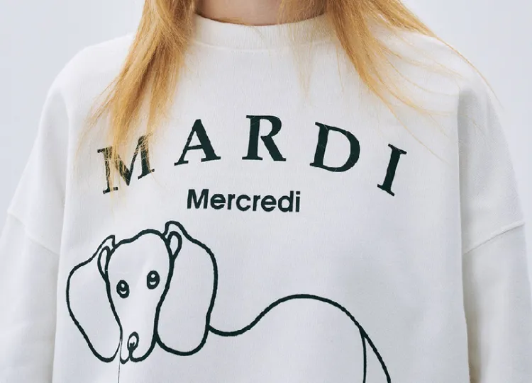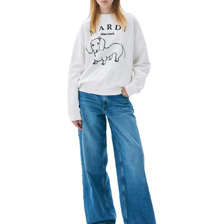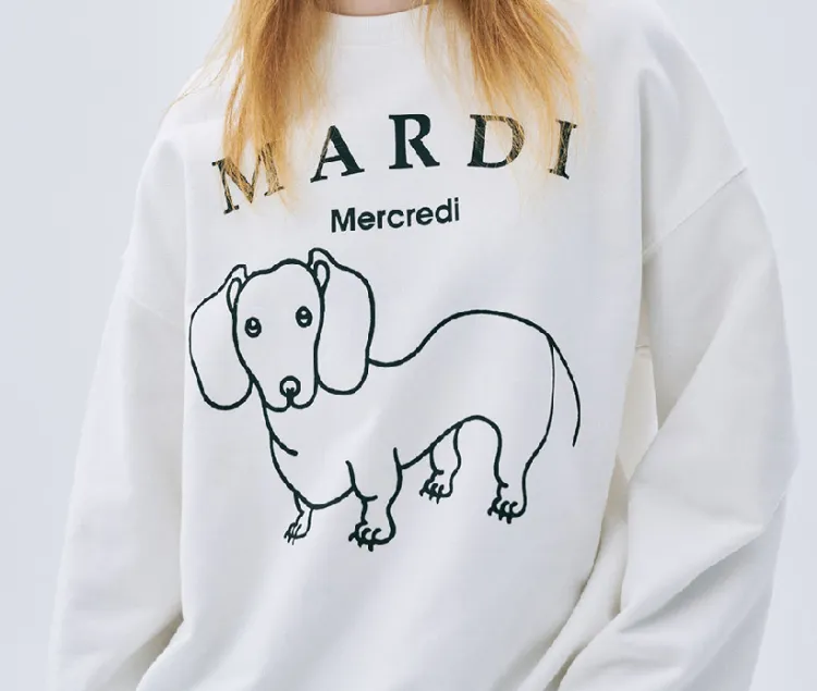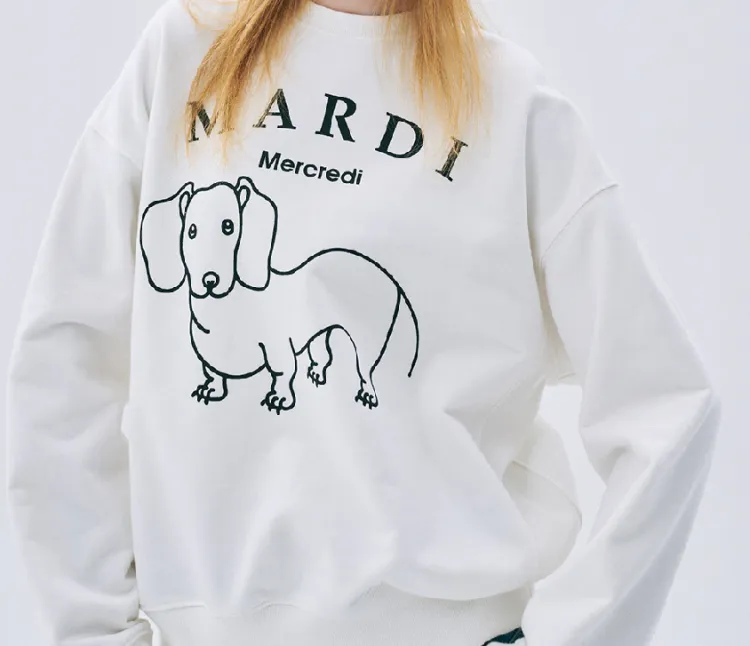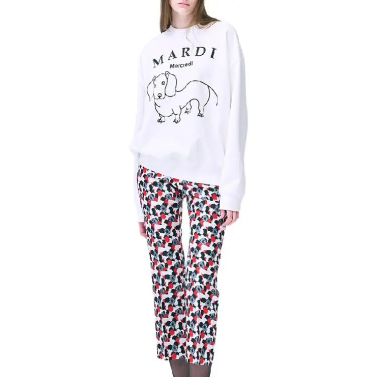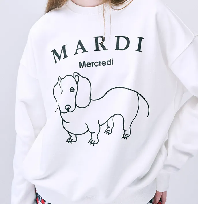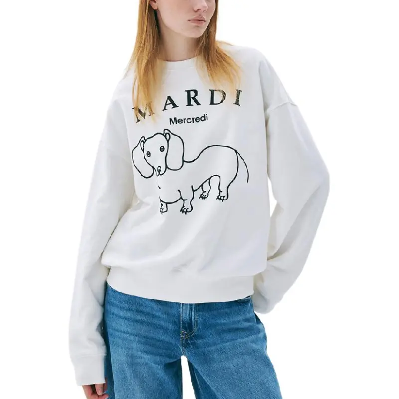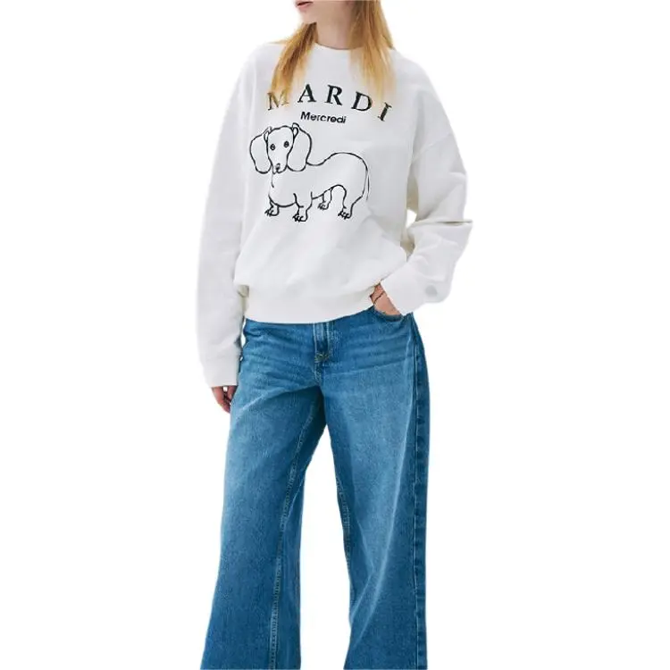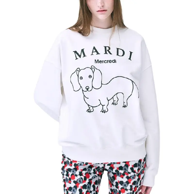 MARDI MERCREDI Мальтезе FW24 Толстовка DDANJI CH.06_Белый черный Толстовка Корейский стиль Women's White Черный