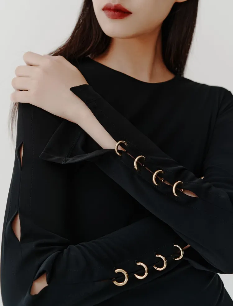 Marella Длинное платье с длинными рукавами женское черное