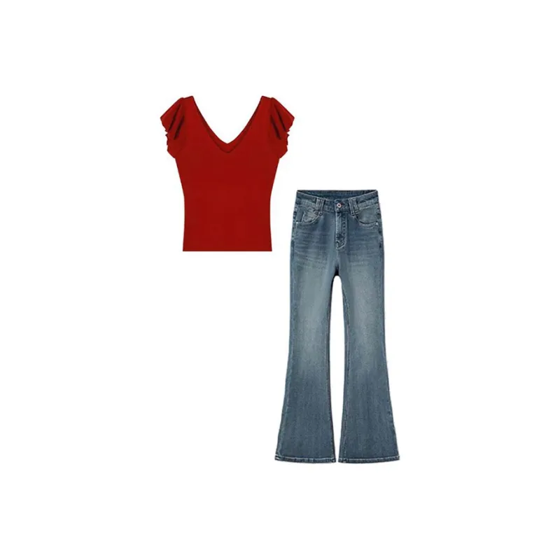 MARIE·COCO Красный топ + Брюки Женские Повседневные костюмы