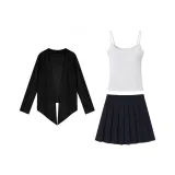 Цвет:Black Cardigan + Strap Top + Skirt Черный кардиган + топ на бретелях + юбка