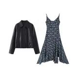 MARIE·COCO Черная куртка + Цветочное платье Женские комплекты с юбкой