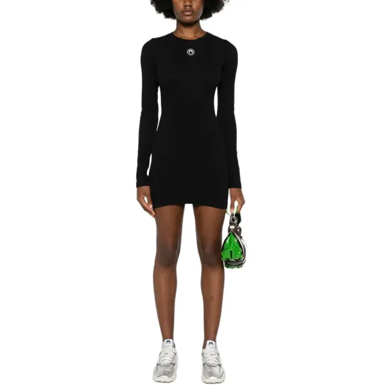 Marine Serre Длинное платье с длинными рукавами женское черное