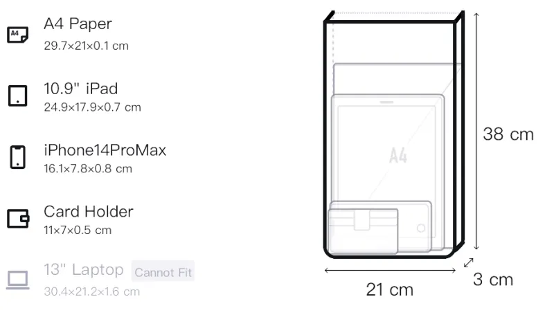 21 см в длину, 3 см в ширину, 38 см в высоту / 35 см в длину, 3 см в ширину, 28 см в высоту / 39 см в длину, 3 см в ширину, 28 см в высоту
