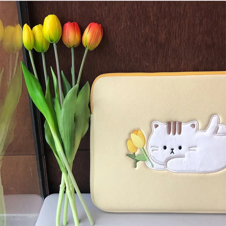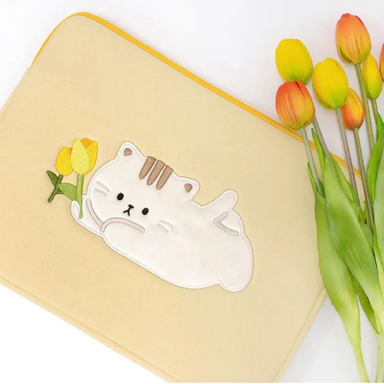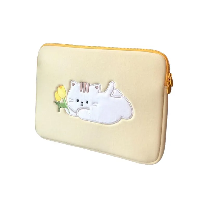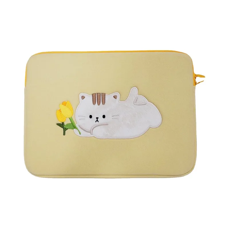 MARKANGARO Холщовая сумка для ноутбука стандартная женская желтая с принтом котенка