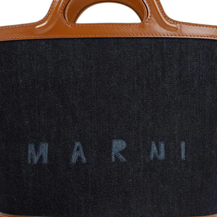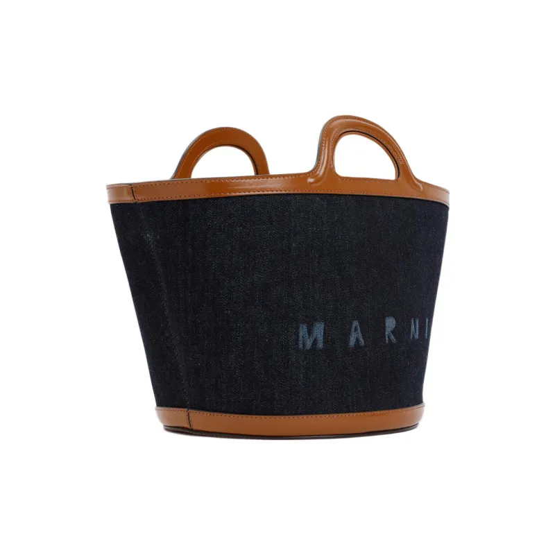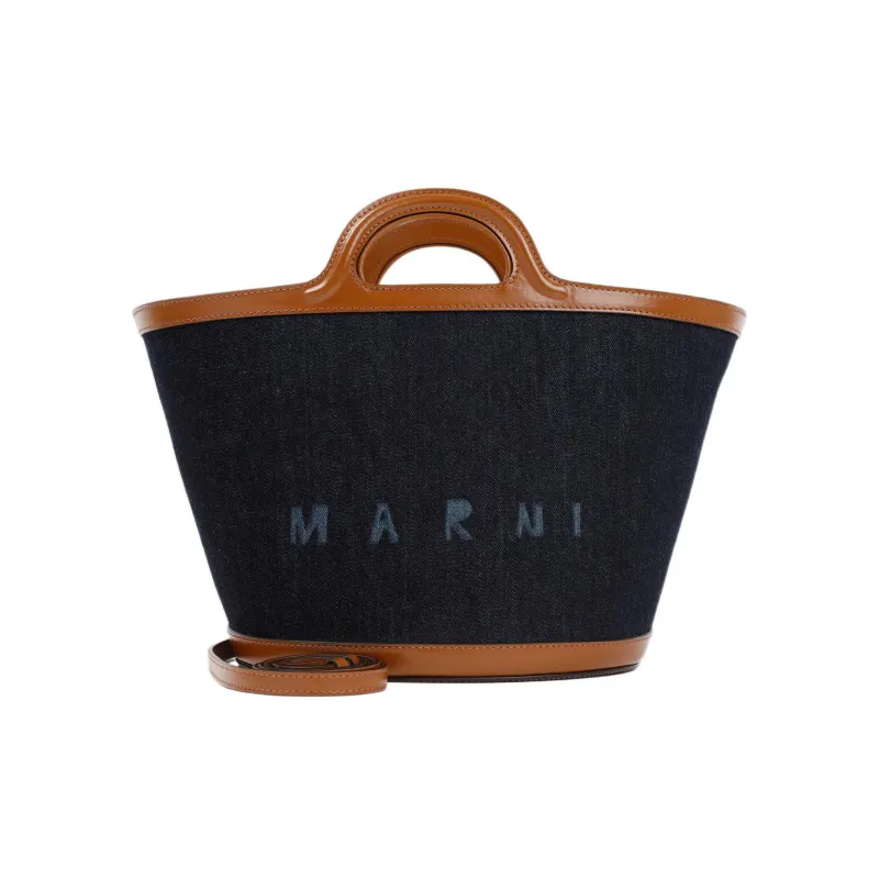 MARNI Cotton Сумка-ведро с кожаными вставками стандартная женская синяя