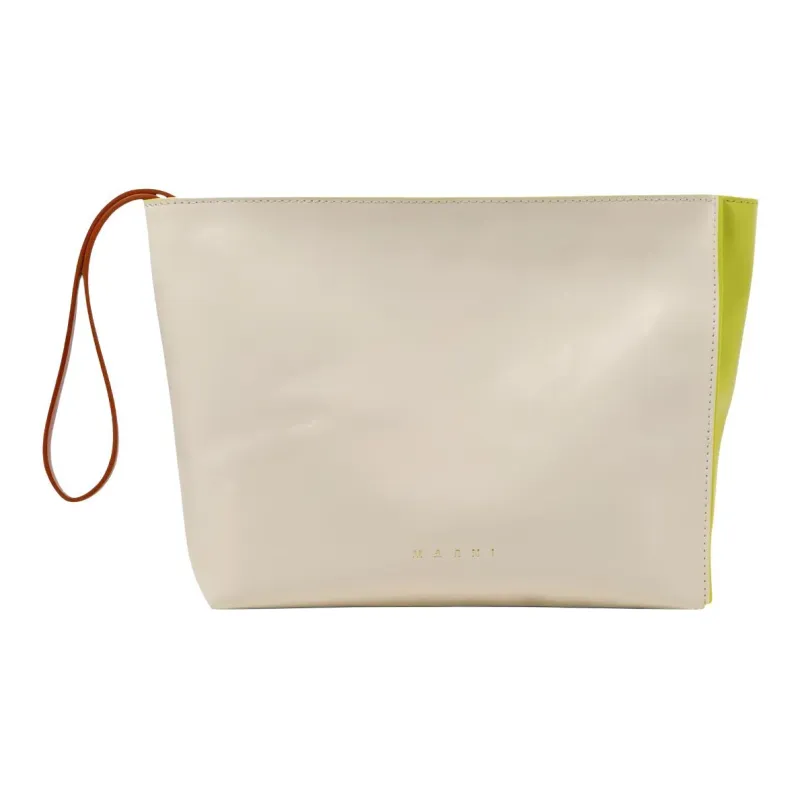MARNI Корова Кожа Запястье Сумка Клатч Женская Белая Желтая