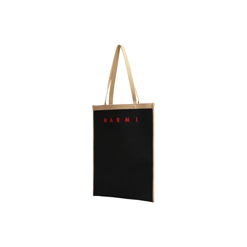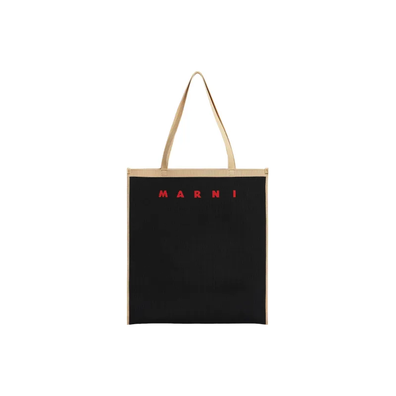 MARNI Жаккард Полиэстер Тоут Сумка Сумка для покупок Сумка Сумка через плечо Женская Бежевая и Черная