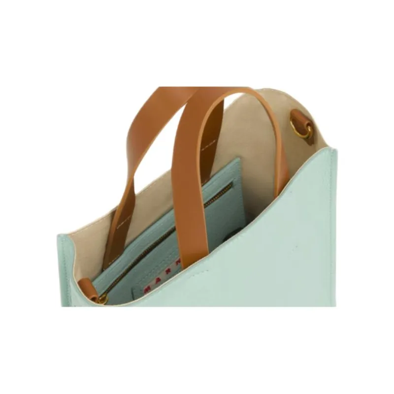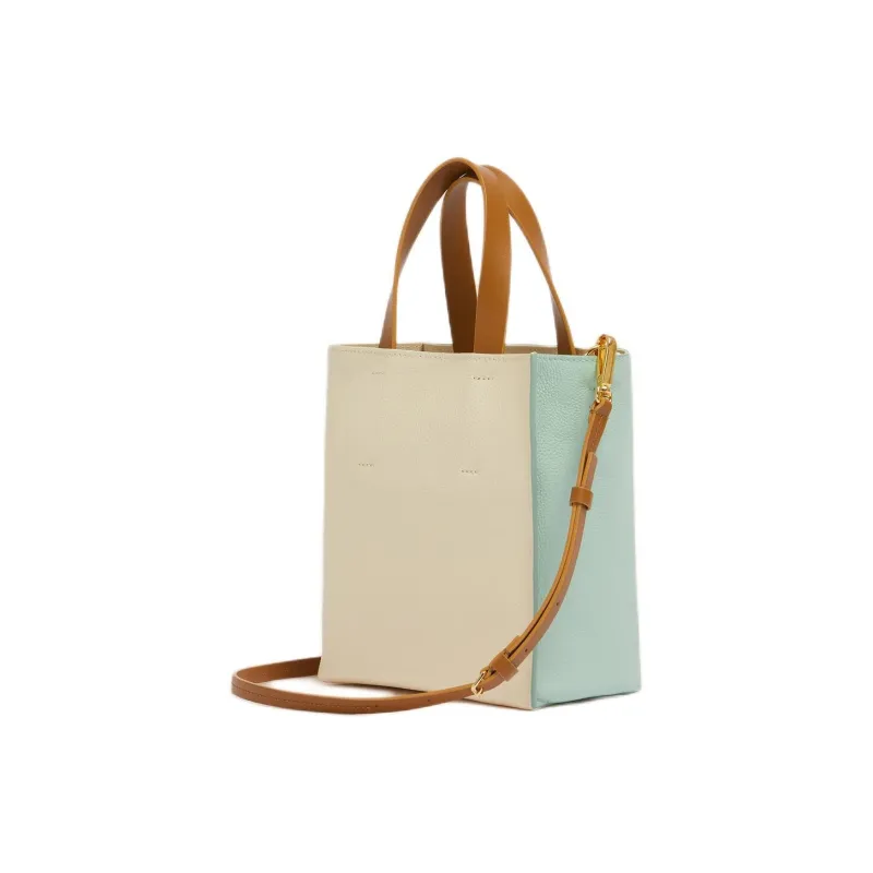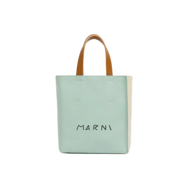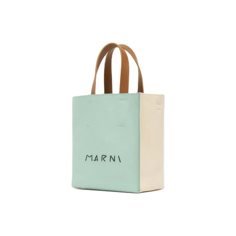 MARNI Museo Телячья кожа Тоут Сумка Сумка для покупок Сумка на плечо Сумка мини Женская Зеленая Кремовая Коричневая