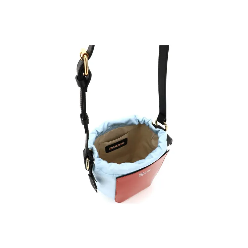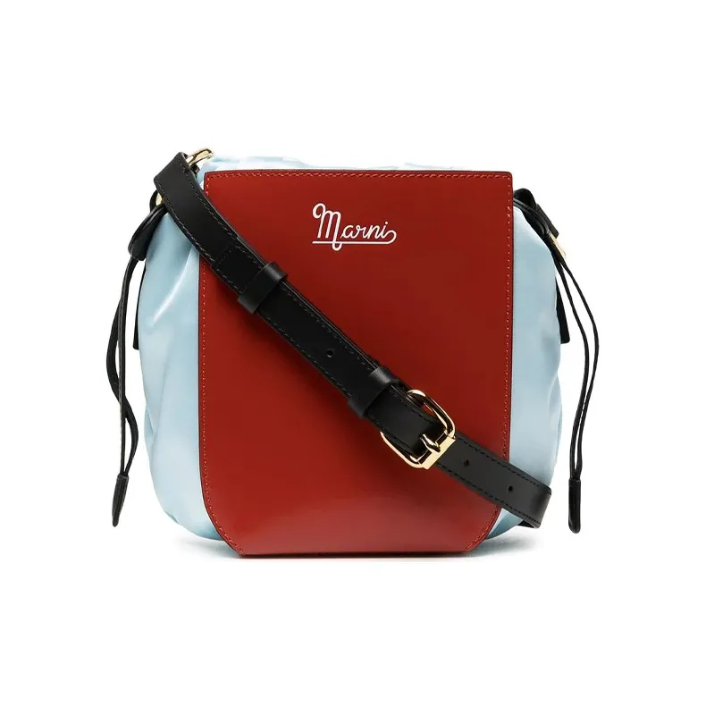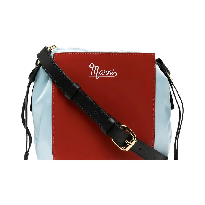 MARNI Нейлон с коровьей кожей ведрообразная сумка плечевая сумка женская темно-красный и светло-синий