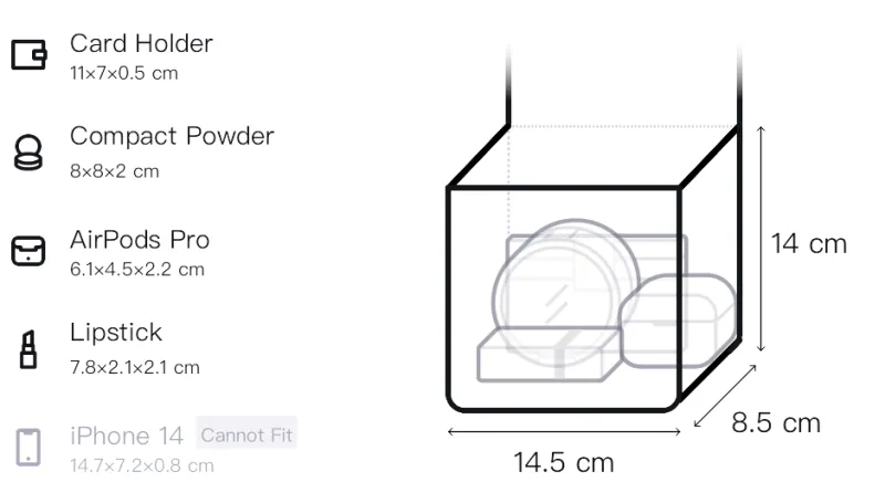 Длина (размер в длину): 14,5/15 см, Ширина корпуса: 8,5 см, Длина корпуса: 14 см