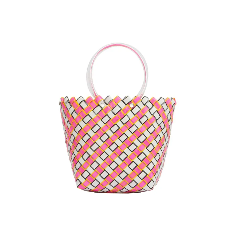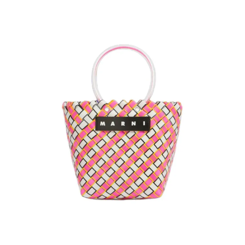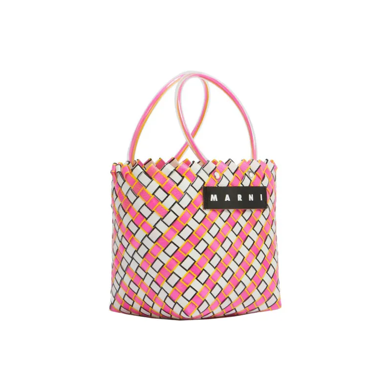 MARNI Полипропиленовая Корзина из Коровьей Кожи Сумка-тоут Сумка для покупок Женская Белая и Розовая
