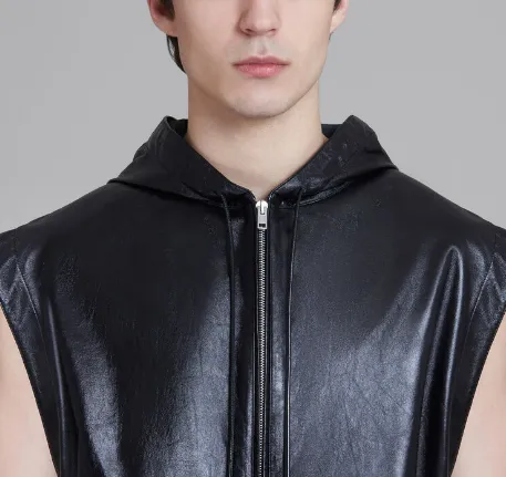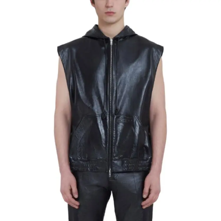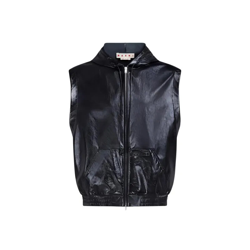 MARNI Черный ULTRALIGHT Naplak Кожаный Жилет с капюшоном Жилет Мужской Черный