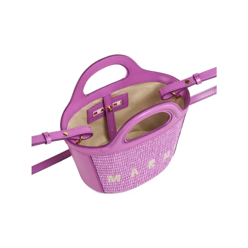 MARNI TROPICALIA Кожа с Рафия Сумка через плечо Сумка Экстра маленькая Женская Фиолетовая
