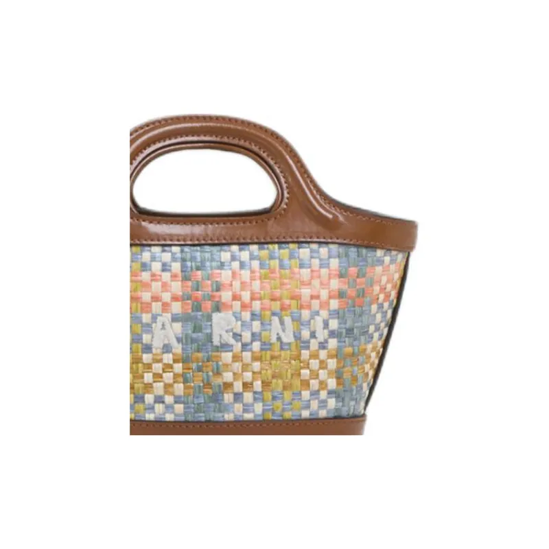 MARNI TROPICALIA Рафия Кожаная Вставка Сумка Сумка через плечо Сумка через плечо Extra Mini Женская Коричневая