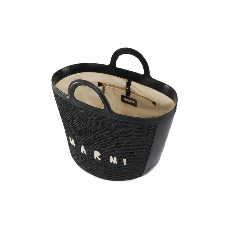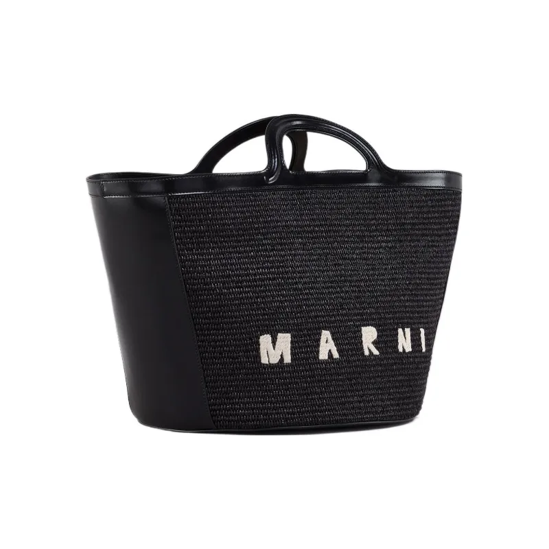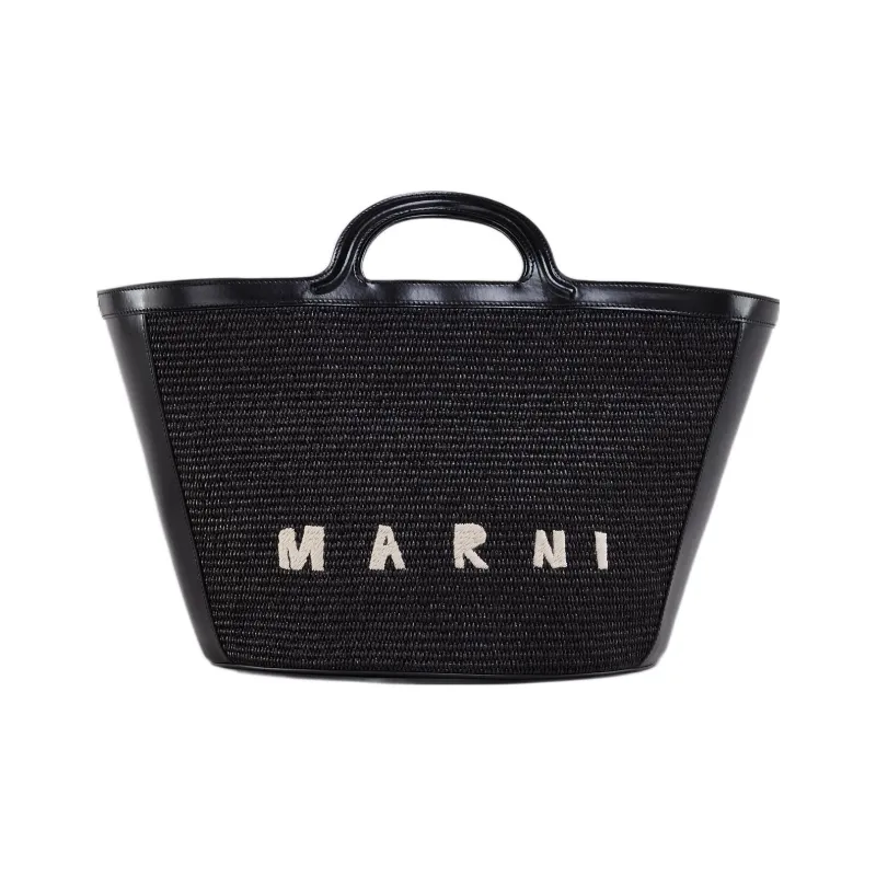 MARNI Cotton с Телячьей Кожей Тоут Сумка Сумка для покупок Сумка Большая Женская Черная