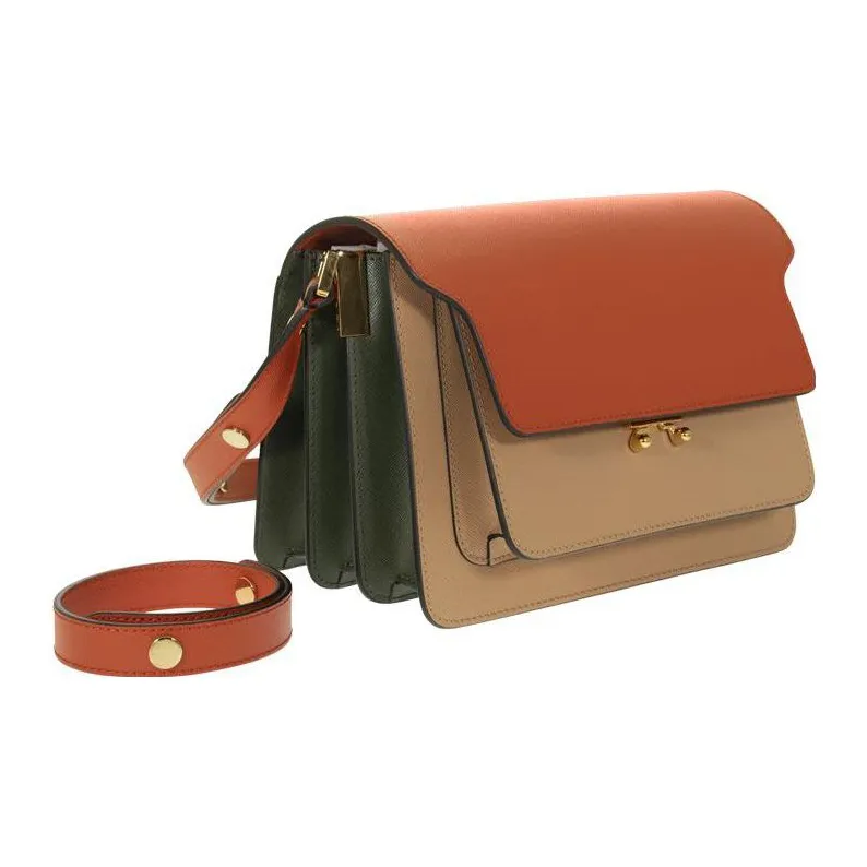 MARNI Основная часть Телячья кожа Портативный Сумки через плечо Сумка через плечо Женские Апельсин CAMEL Армейский зеленый