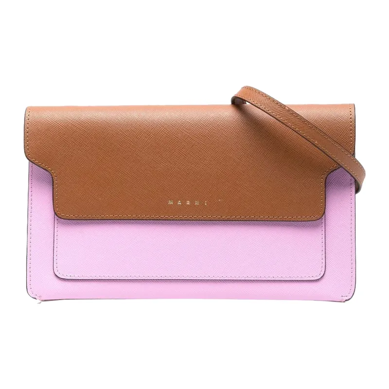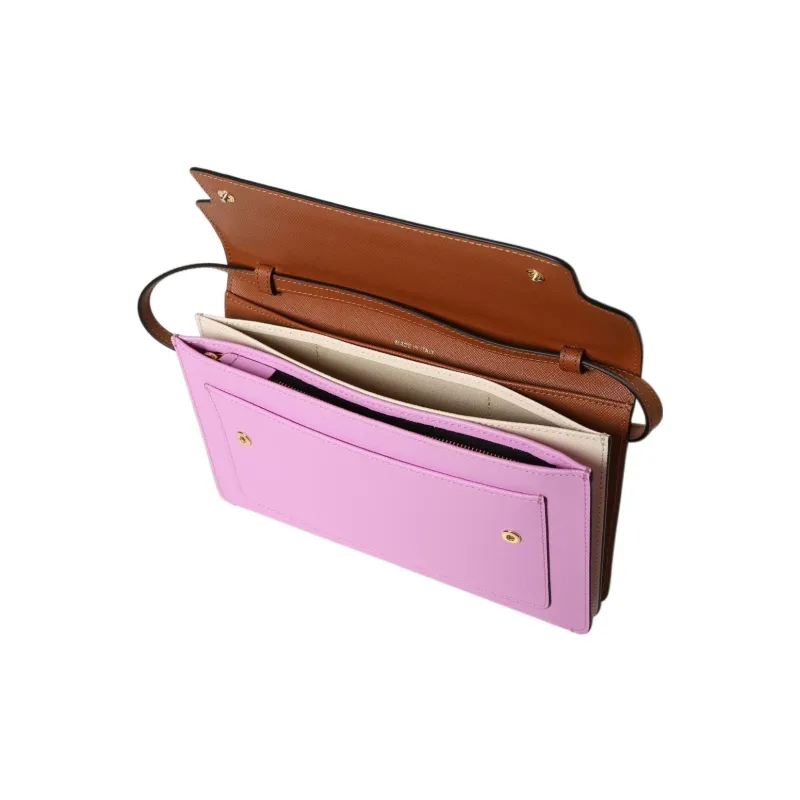 MARNI Основная часть Телячья кожа Сумка через плечо Женская Коричнево-желтая и Светло-розовая