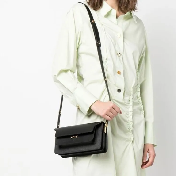 MARNI Основная часть Телячья кожа Сумка через плечо Сумка на плечо Женская Черная