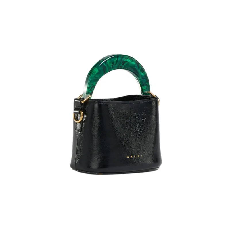 MARNI Venice Лакированная кожа Ведрообразная сумка Сумка через плечо Мини сумка Женская Черная