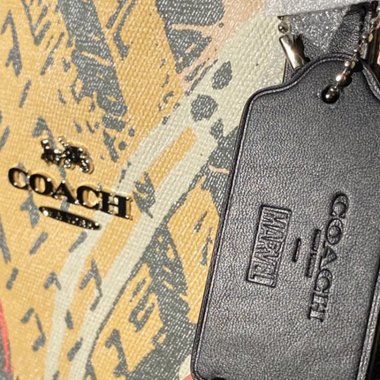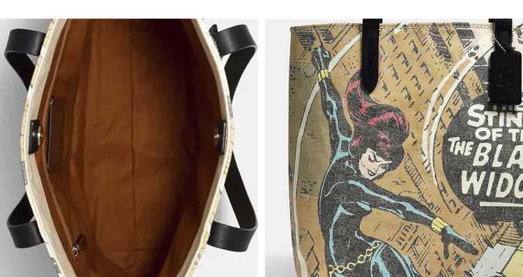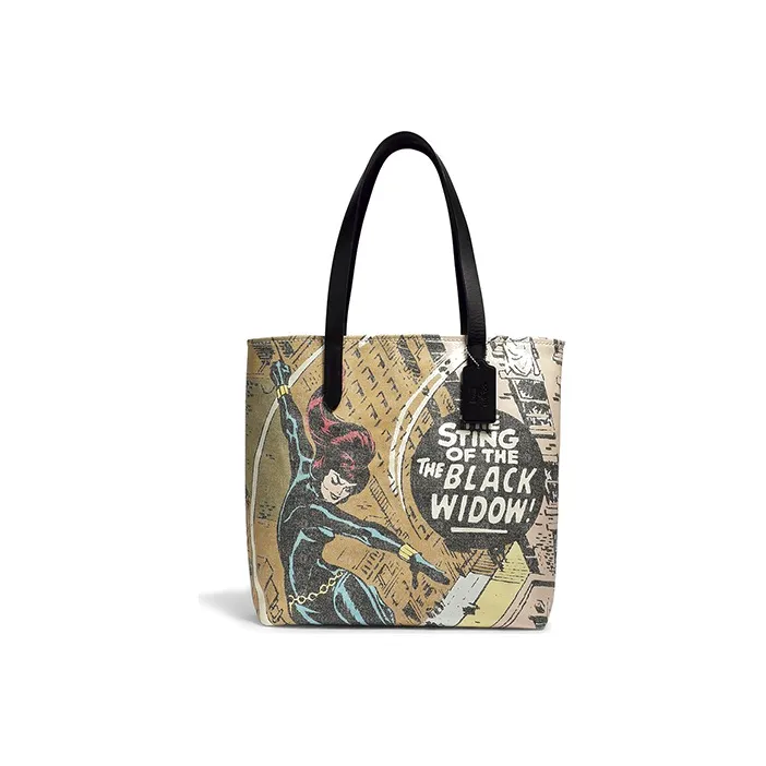 COACH Marvel Black Widow Коллаборация Холст с гладкой кожей Тоут Сумка Сумка для покупок Сумка на плечо Сумка Большая