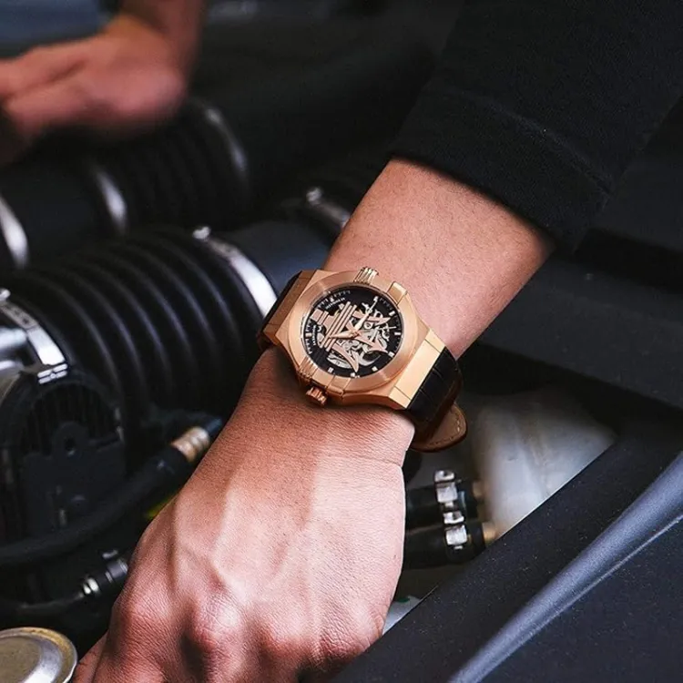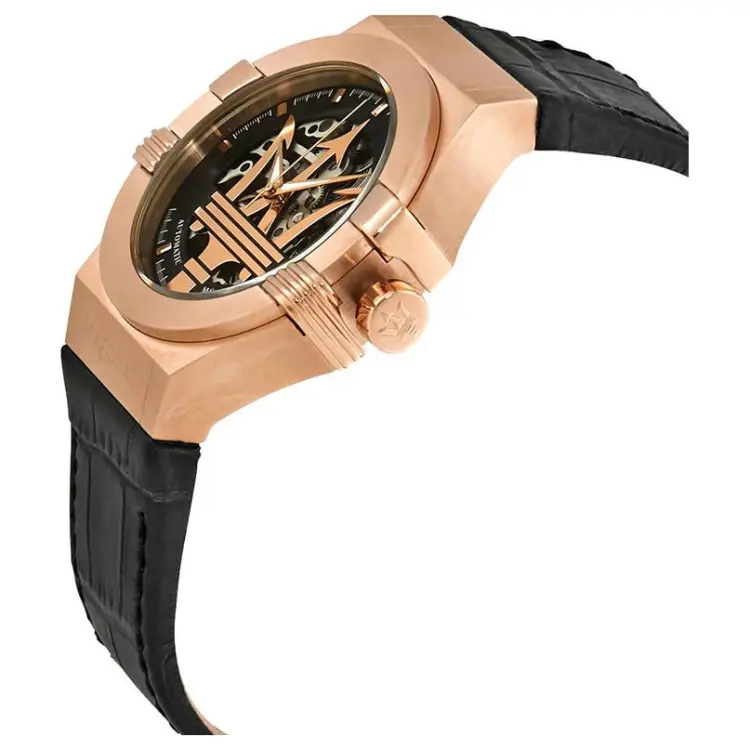 Maserati Мужские часы Автоматический механический механизм Кожаный ремешок 40 мм Черный циферблат
