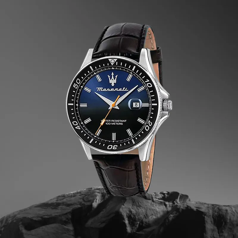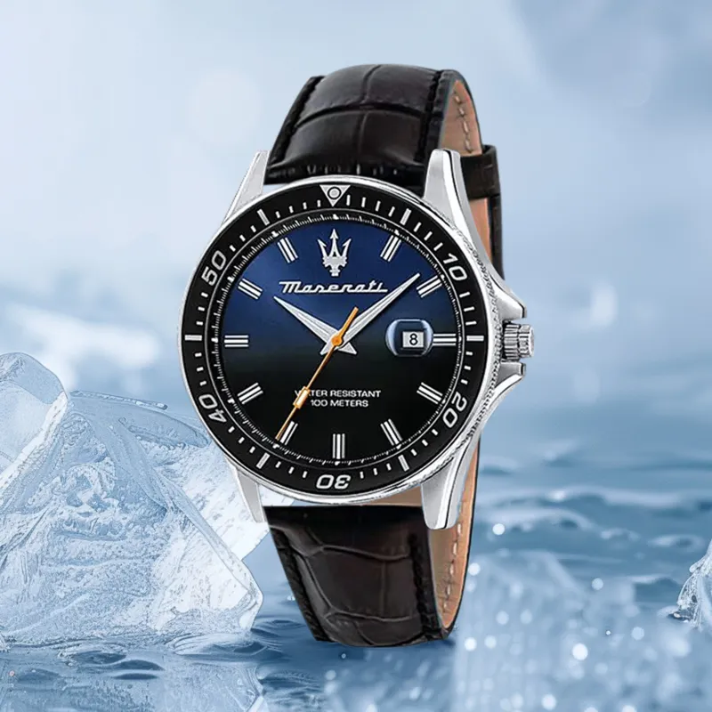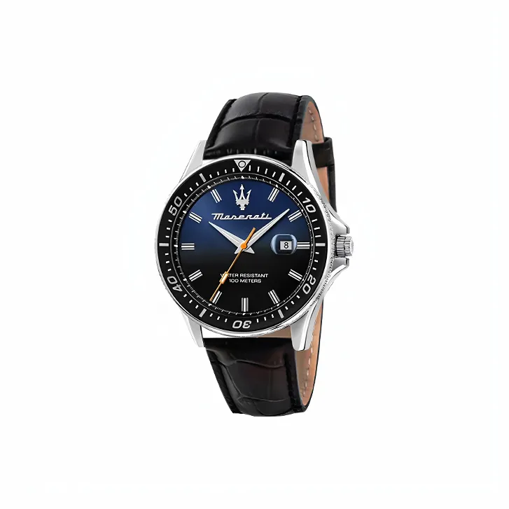 Maserati Men's Watches Кварцевый механизм натуральная кожа ремешок 44 мм синий циферблат итальянская версия импорт