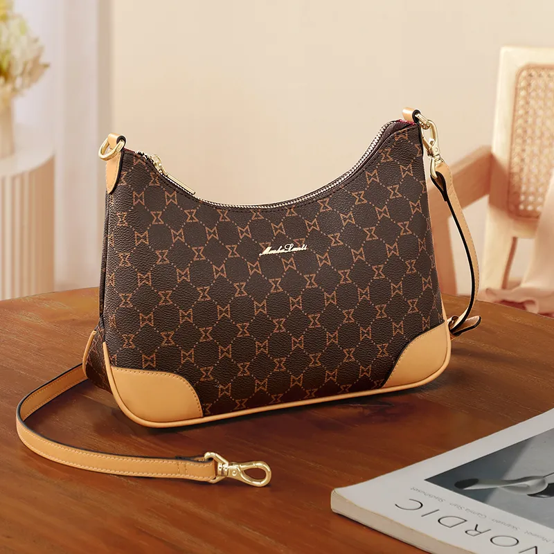 MashaLanti PVC Полумесяц Сумка через плечо Стандартная Женская Темно-коричневая и Абрикосовая