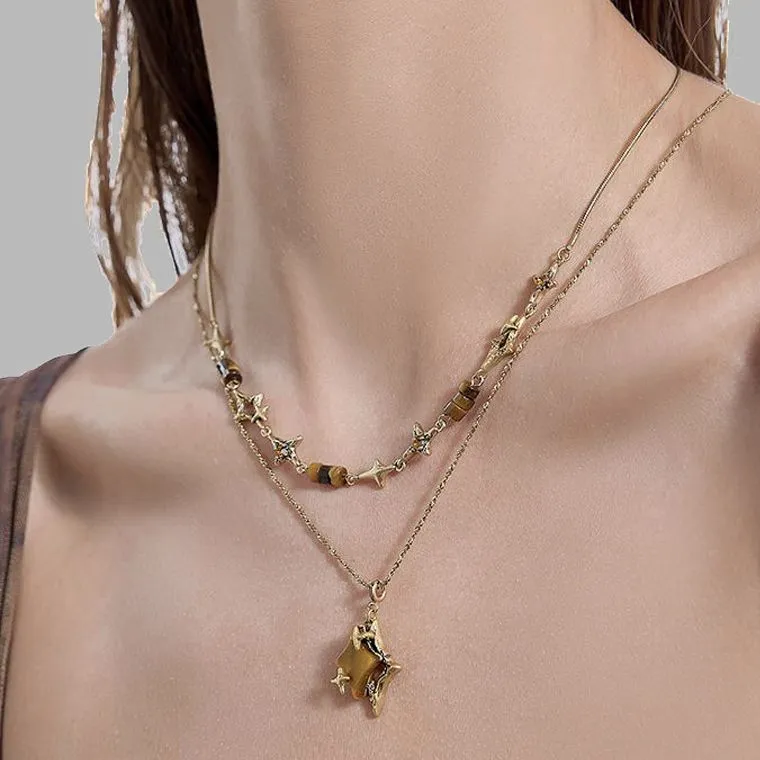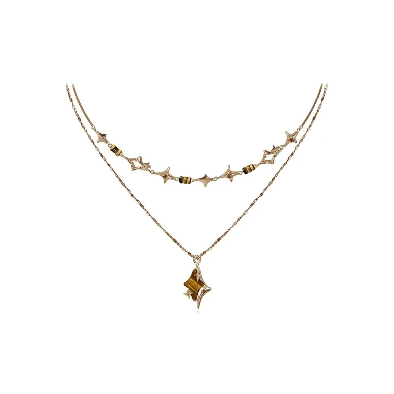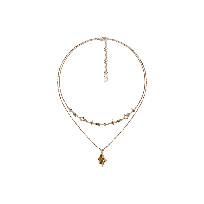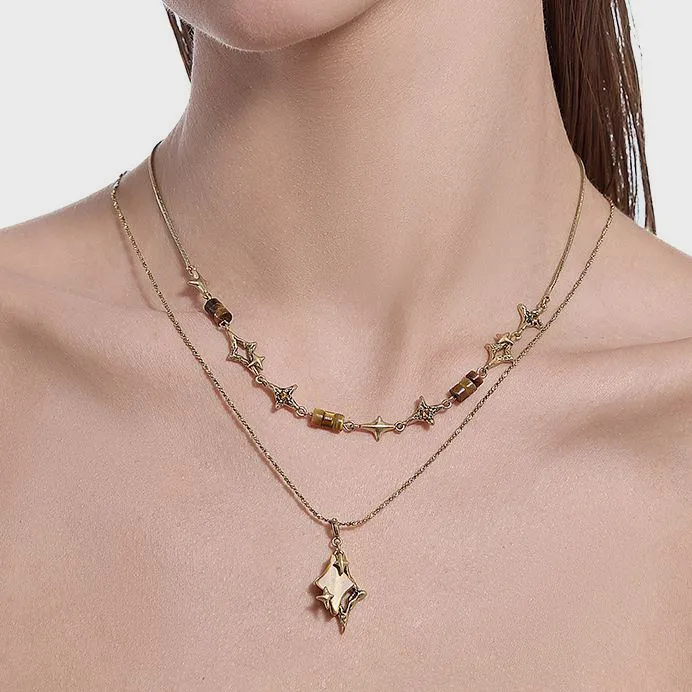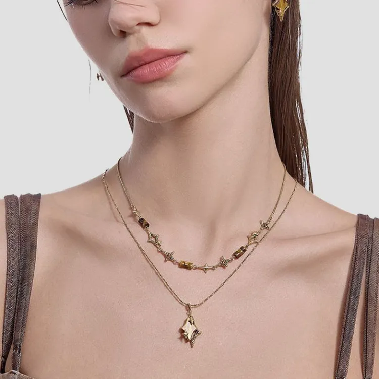 masw Винтаж Звезда Двойной Layer Цепочка для свитера Ожерелья Женские