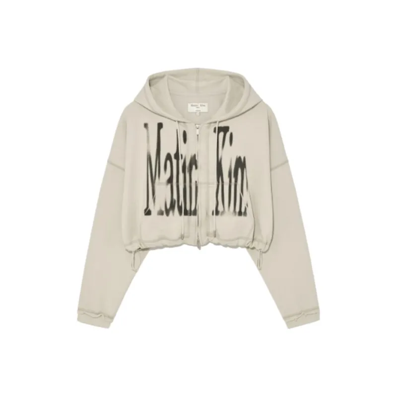 MATIN KIM Большой логотип Crop HOODY ZIP UP в бежевом свитшоте женский