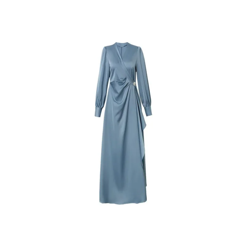 Max Issa Длинное платье с длинными рукавами женское гиацинково-синего цвета