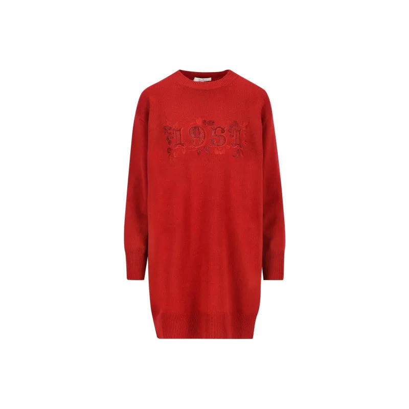 MaxMara Длинное платье с длинными рукавами женское красное