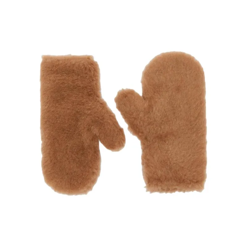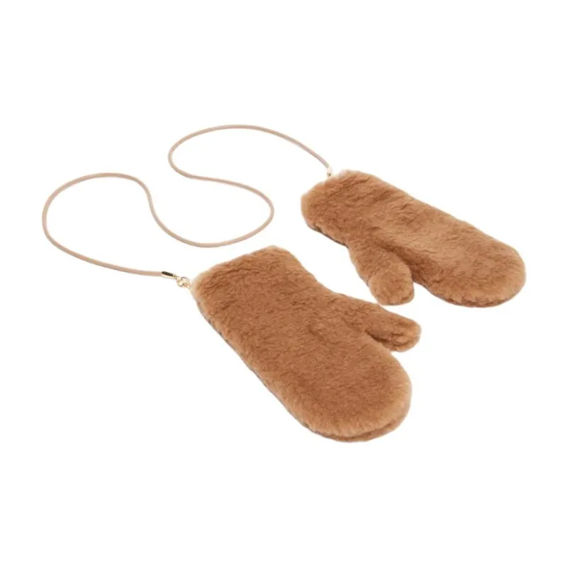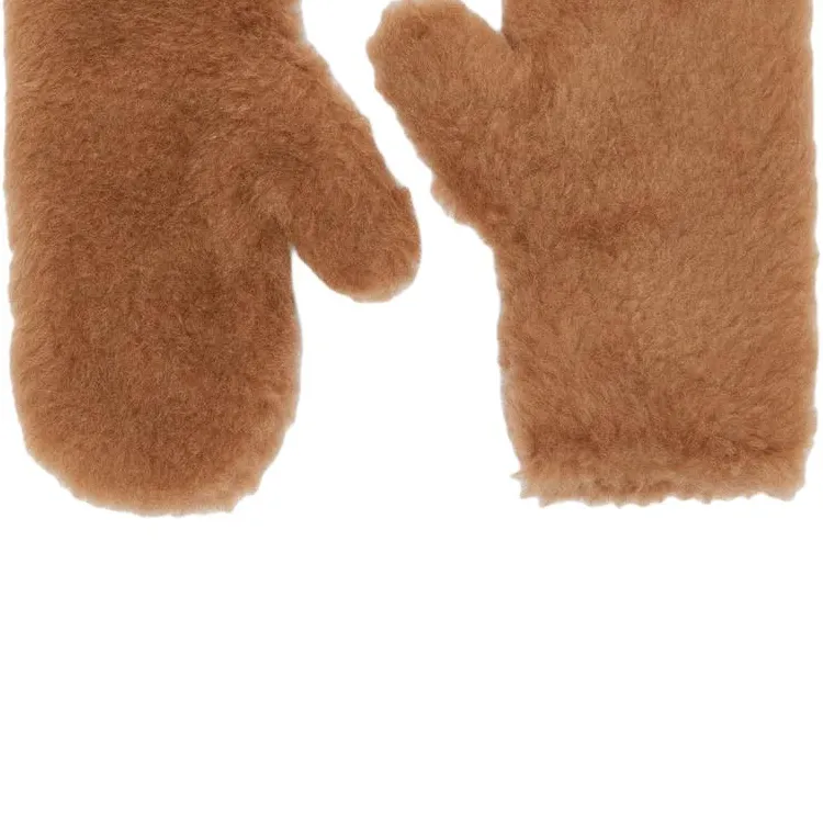 MaxMara Фур Шерсть Металл Шелк Перчатки из верблюжьей шерсти Унисекс Коричневый