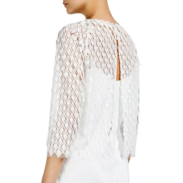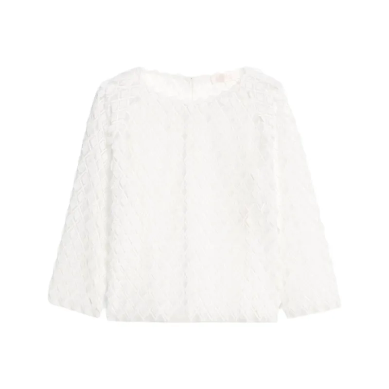 MaxMara Trento Коллекция Вышитая Бежевая Рубашка из Туля для Женщин